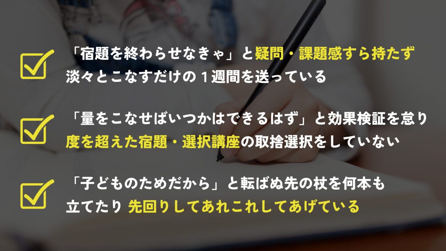 「自分が受験した頃はこうだったから」「ママ友が言っていたから」とわが子に強要させる。また、塾の面談で先生が偏差値表と模試結果を照らし合わせながら「合格した生徒はこうしていたから」と口にする。このことに違和感を持ちませんか?